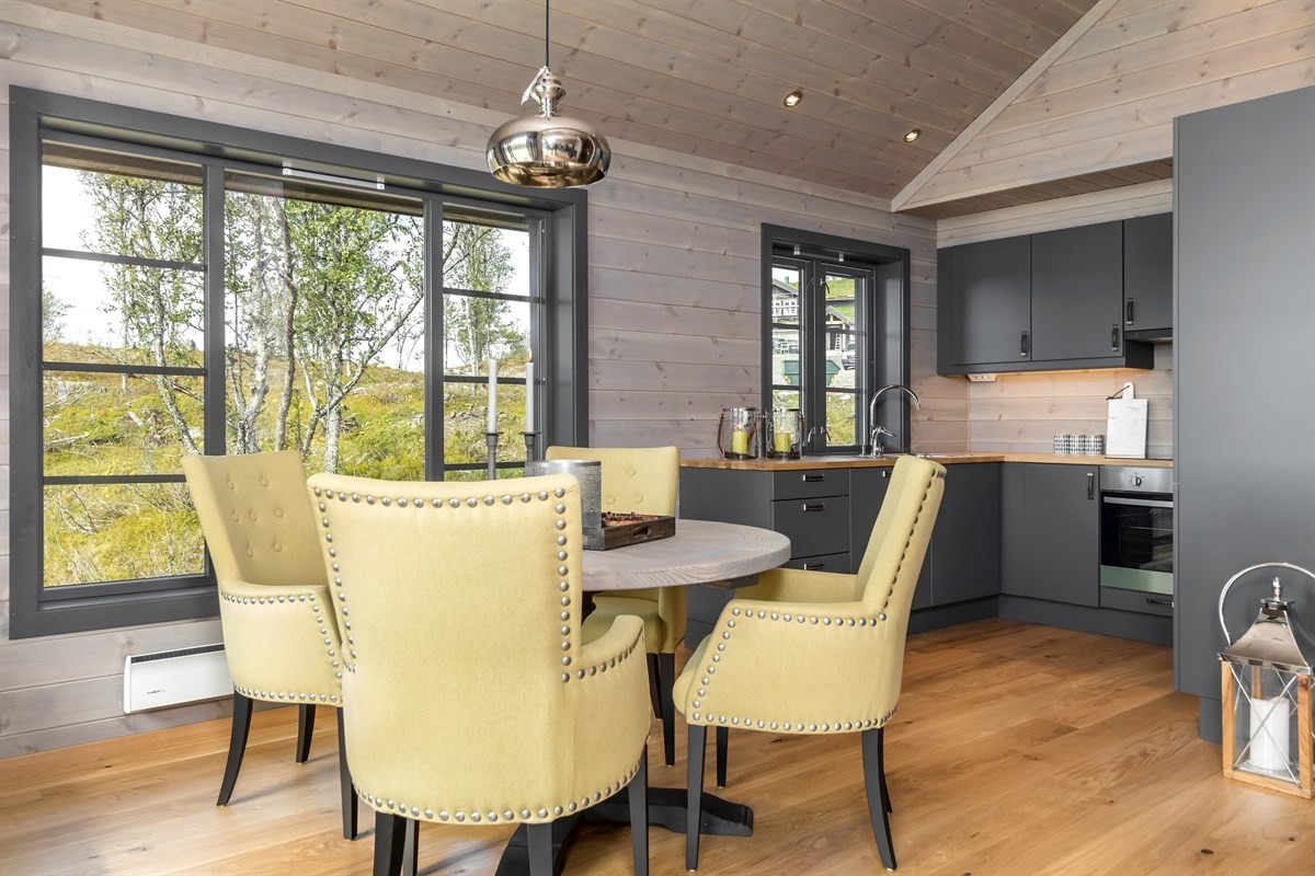 Inneholder tre soverom, romslig bad, bad/vaskerom med wc i forbindelse med inngang/garderobe, overbygd inngangsparti, romslig kjøkken med spiseplass i åpen løsning med stue. Store vinduer som gir mye lys og fantstisk nærhet til natueren. Åpen overbygd uteplass. Mulighet for innredning av hems med ekstra soverom og TV stue.